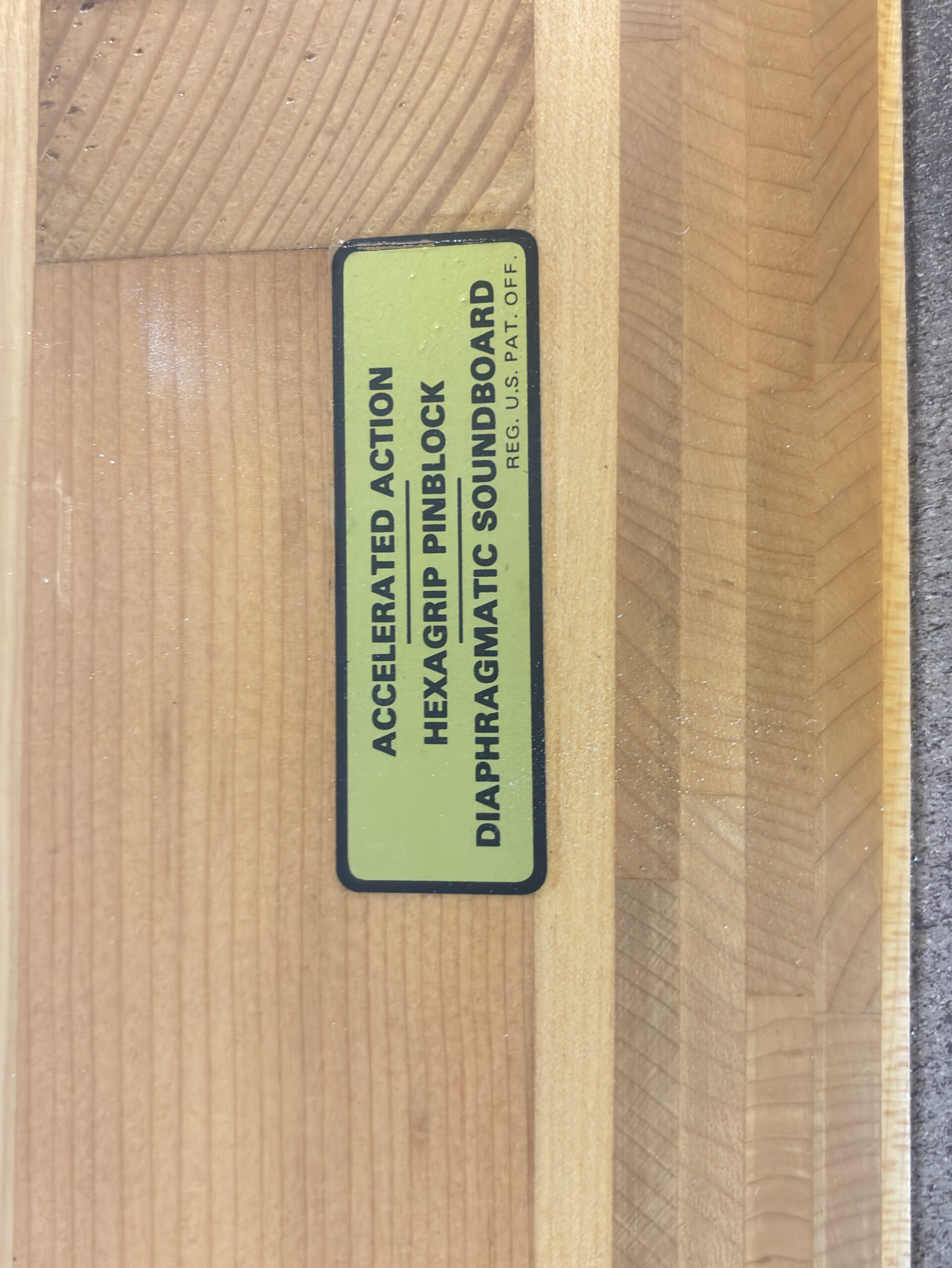hexagrip pin block and accelerated action are found in the Steinway F upright.
